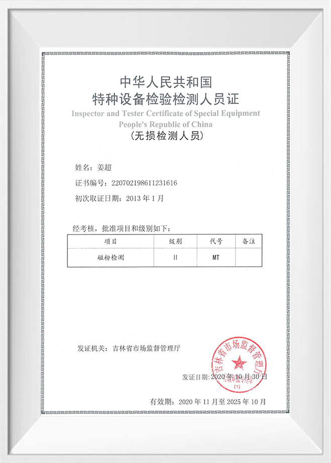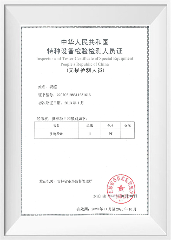 A Kínai Népi Köztársaság Különleges felszerelések ellenőrének és tesztelőjének igazolása